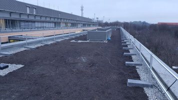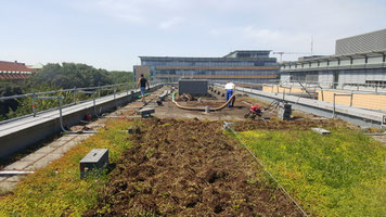 FPO-Folienbahnen erneuert und die Dachbegrünung bestehend aus Speicher-, Drän- und Substratschicht wiederhergestellt.